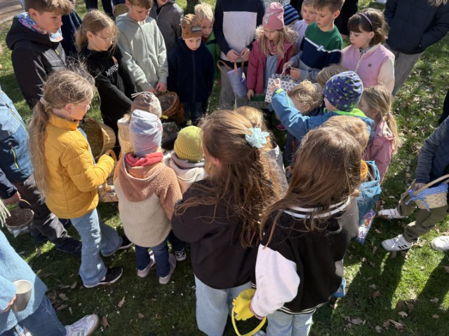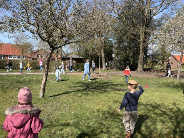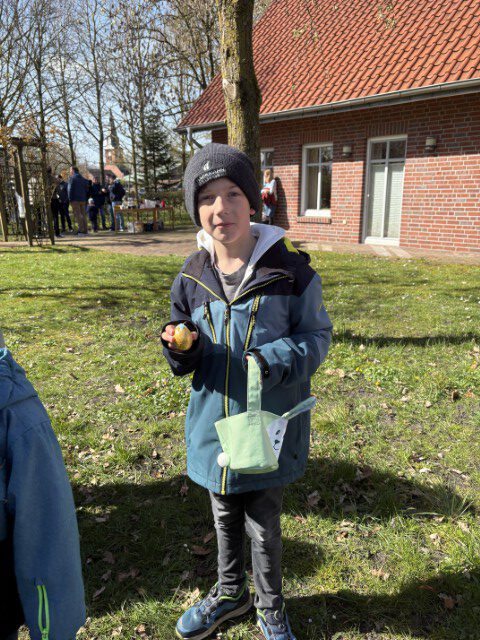Besonders spannend war die Suche nach dem goldenen Ei, welches vom Osterhasen besonders gut versteckt war. Schließlich wurde das Ei von Benno Hackmann gefunden. Herzlichen Glückwunsch Benno! Am Ende waren die Körbchen gut gefüllt und alle Kinder (und Erwachsenen) begeistert von der wieder einmal gelungenen Aktion.