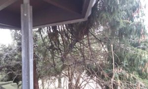 Auf dem Lagerfriedhof der KZ-Gedenkstätte in Esterwegen ist ein Baum vom Nebengelände in Richtung der Gedenkhalle gefallen und hat mit der Krone das Dach erreicht. Der Schaden dürfte nicht sehr groß sein, bzw. werden, wenn man sich bald um die Sache kümmert.