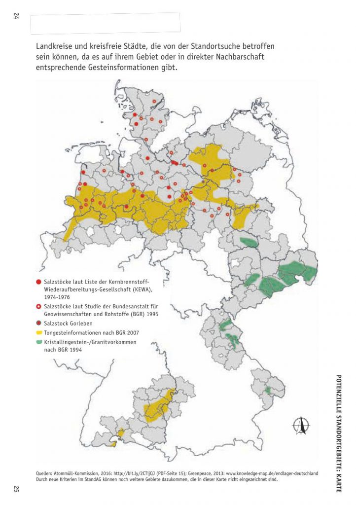 Tatsächlich wird wegen der mangelnden Datenlage nicht von einer „weißen Landkarte“ ausgegangen, sondern es kommen nur die bekannten Standorte in die Auswahl. Das bedeutet nicht, dass der sicherste Standort gefunden wird. Die Daten werden der Öffentlichkeit nicht zugänglich gemacht, so dass eine echte Prüfung der Eignung der Standorte auch nicht stattfinden kann.