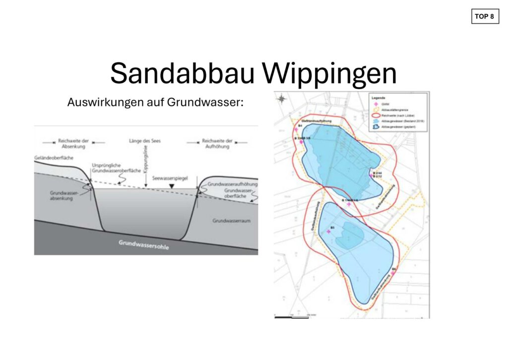 Der zweite große Tagesordnungspunkt ist der Abschluss eines Vertrages mit der Firma Smals I.K.W BV über Rahmenbedingungen für den Abbau von Boden in der Gemeinde Wippingen. Es geht also um die Erweiterung der Kiesgrube. In der Sitzungsvorlage wird u. a. der Umfang des in Frage kommenden Geländes beschrieben, wie Naturschutzbelange berücksichtigt werden sollen und welche Kompensationsmaßnahmen es geben wird.