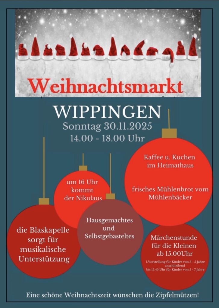 Am 30. November 2025 findet der alljährliche Weihnachtsmarkt auf dem Wippinger Heimathof statt.